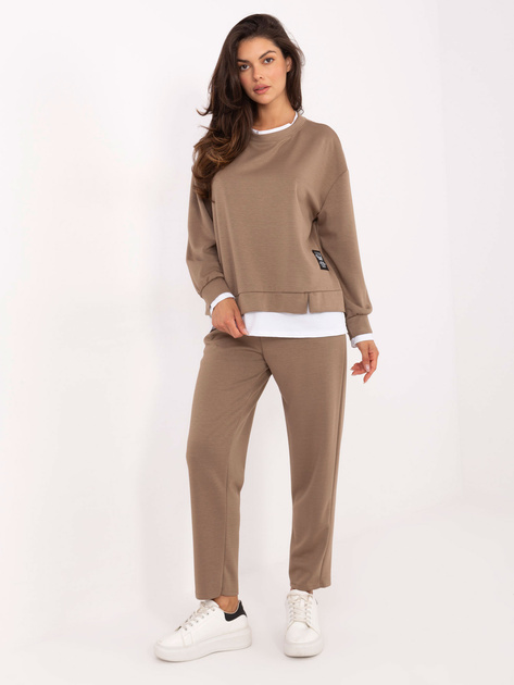Casualowy ciemnobrązowy luźny komplet bluzka + spodnie